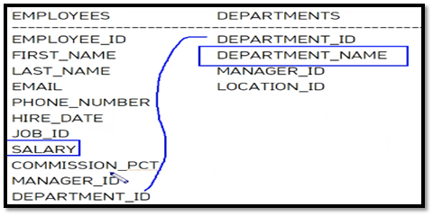 1. 부서별 최대급여를 받는 사원의 부서명, 최대급여를 출력하시오