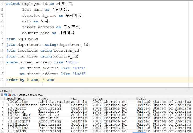 => employees, departments, jobs 세 테이블은 순서 상관 없다.